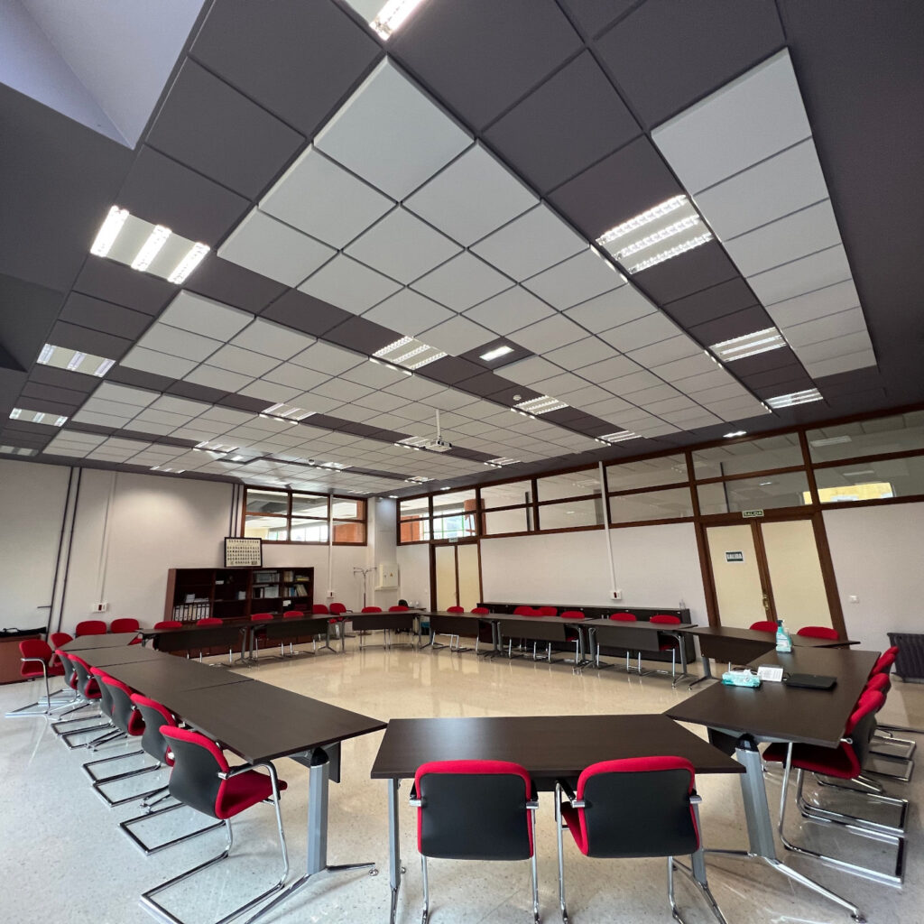 Rendimiento acústico combinado con diseño. Diseñada para espacios colectivos donde el confort acústico es esencial.