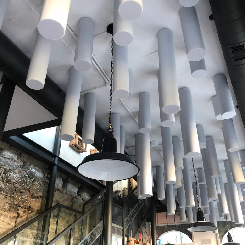 Por eso, en Kron apostamos por la tecnología más avanzada en absorción acústica. Eliminamos el eco que dificulta la concentración y el aprendizaje en colegios y universidades, y que afecta a la experiencia de los clientes y profesionales del sector de la hostelería.